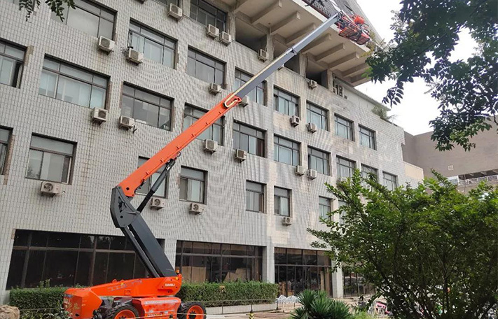• 17.5米伸縮臂登高車酒店開業外墻高空作業施工現場
